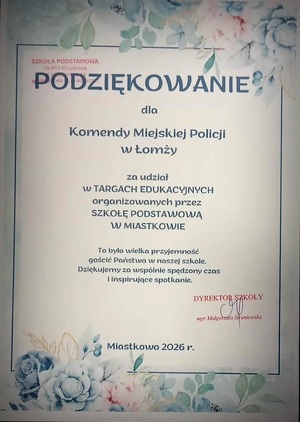 Podziękowania dla Komendanta Miejskiego Policji w Łomży